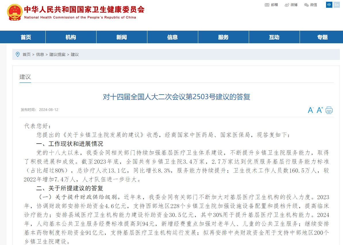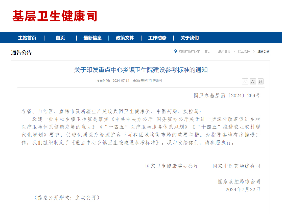 國家衛(wèi)生健康委印發(fā)《重點中心鄉(xiāng)鎮(zhèn)衛(wèi)生院建設參考標準》